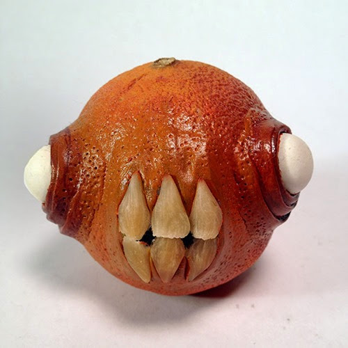 While this was happening I had started to take up sculpting little creatures out of clay and resin (more on that in a later post), and eventually (you can see where this is headed) I wondered if it possible to sculpt on the dried orange husks themselves….